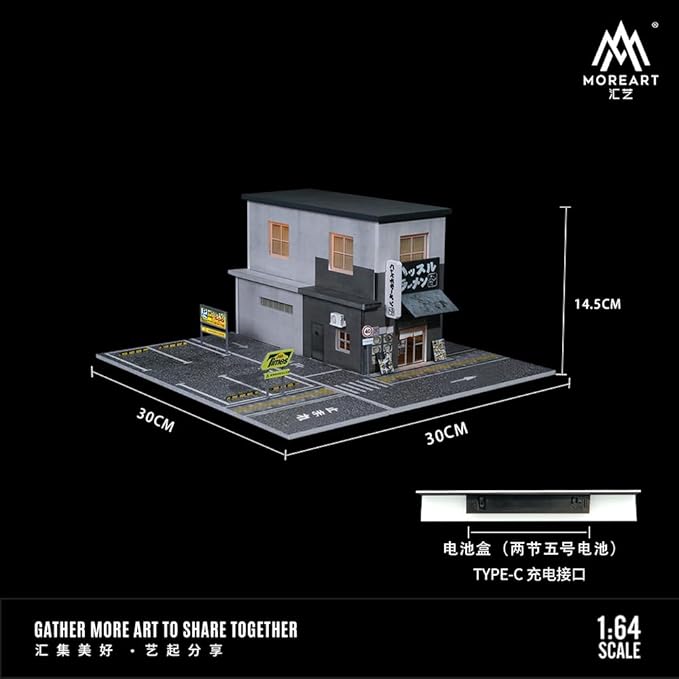 1:64 Scale Japanese Ramen Restaurant Diorama with LED Lighting β Realistic Miniature Scene for Diecast Cars β Hot Wheels, Mini GT, Matchbox Compatible β 30x30x14.5 cm Display
