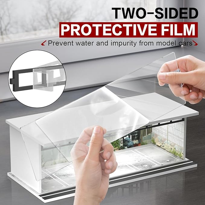 • 【Push-pull Clear Acrylic Cover】The acrylic cover of diecast garage has glass-like clarity and adopts a push-pull design, which is easy to storage and clearly display collection. Acrylic covers and accessories have two-sides protective films to prevent scratches.