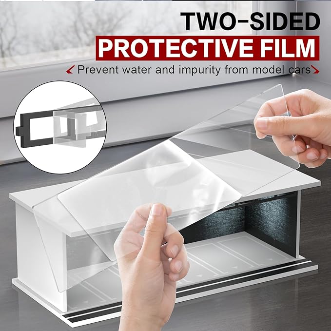 • 【Push-pull Clear Acrylic Cover】The acrylic cover of diecast garage has glass-like clarity and adopts a push-pull design, which is easy to storage and clearly display collection. Acrylic covers and accessories have two-sides protective films to prevent scratches.