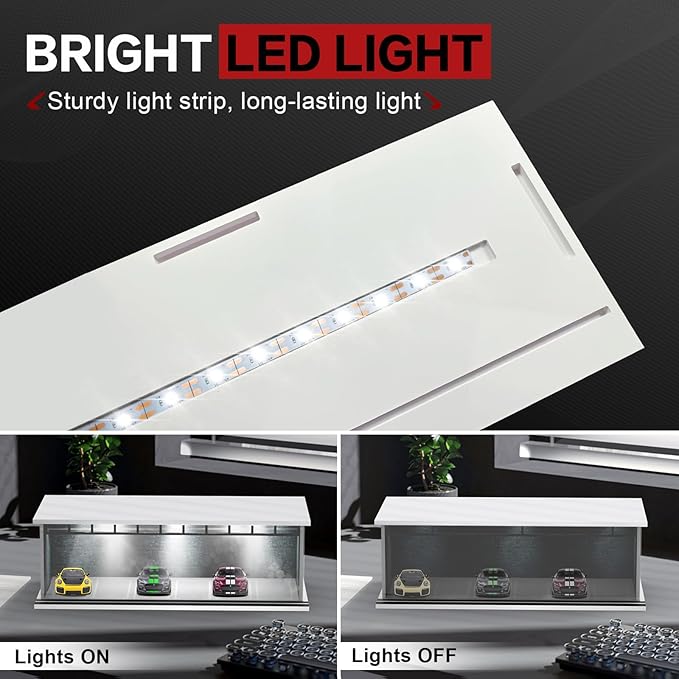 • 【Bright LED Light】The LED light is firmly attached to the top inside diorama box and is long-lasting. The model car display case will be illuminated with turning on the lights, increasing the atmosphere of the scene