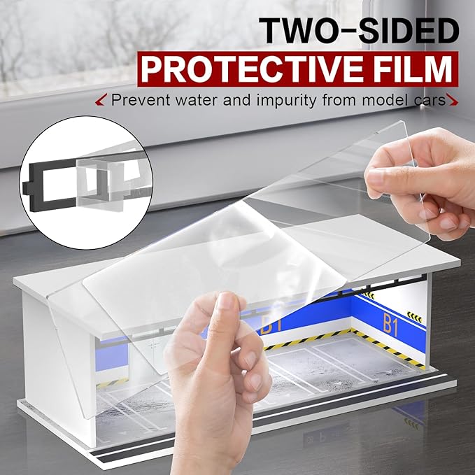 • 【Push-pull Clear Acrylic Cover】The acrylic cover of diecast garage has glass-like clarity and adopts a push-pull design, which is easy to storage and clearly display collection. Acrylic covers and accessories have two-sides protective films to prevent scratches.