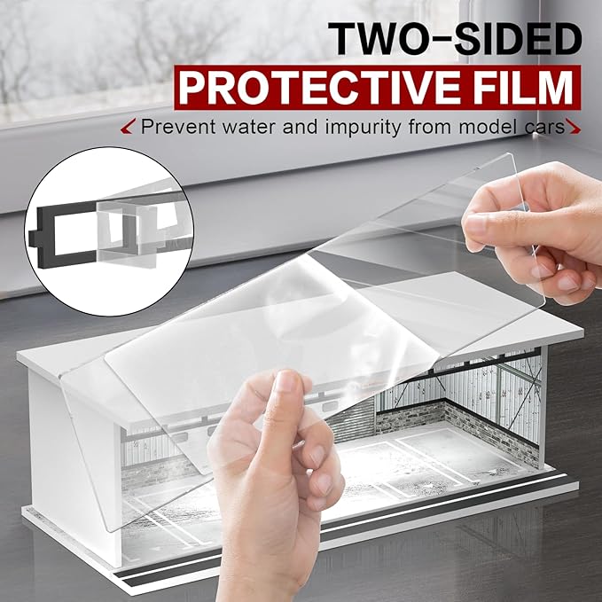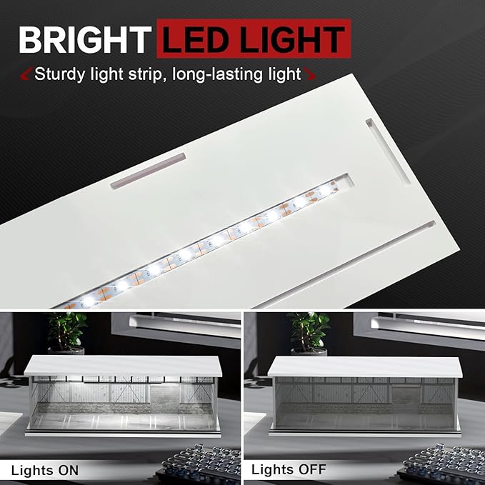 1/64 Scale Diecast Display Case for Hot Wheels Matchbox Cars, Toy Car Model Mini Garage with LED Light and Acrylic Cover, Stackable Parking Lot Diorama Storage for Collection Present
