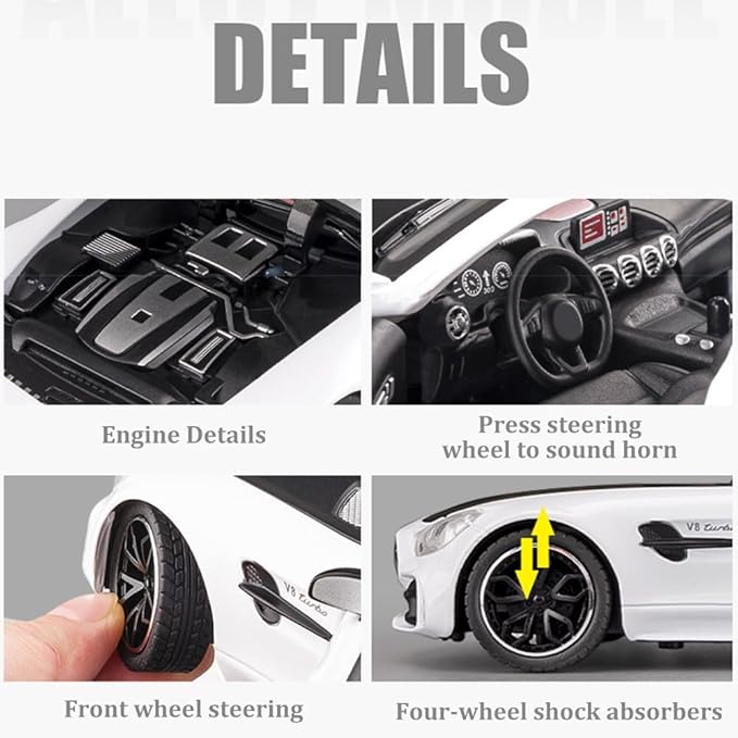1/24 Benz AMG GTR Model Car Alloy Diecast Pull Back Vehicle Cars with Lights AMG GTR Toy Car Great Gift for Boys & Girls