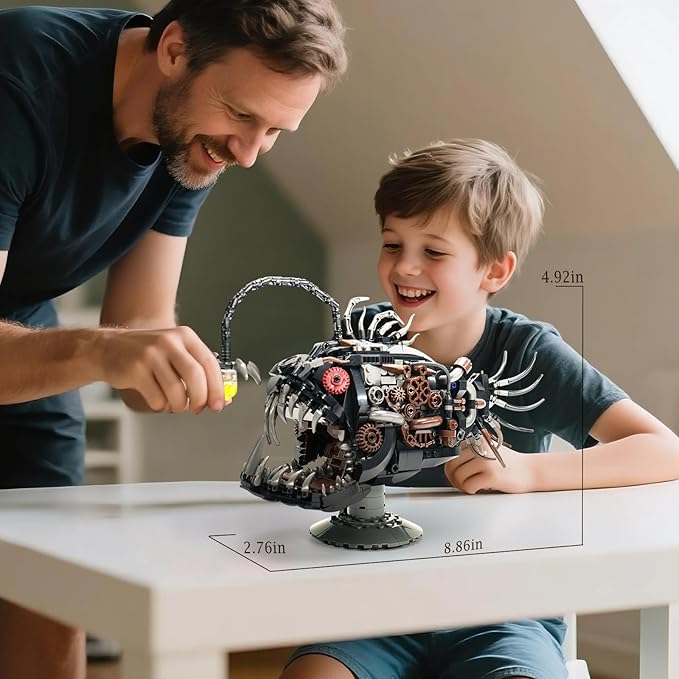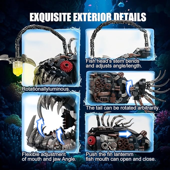 Ideas Mechanical Lantern Fish Building Blocks Set Compatible with Lego Collectible for Ocean Lovers, Perfect as an Office or Home décor for Adults. STEM Construction Gift for Boys Aged 8-16 1038PCS