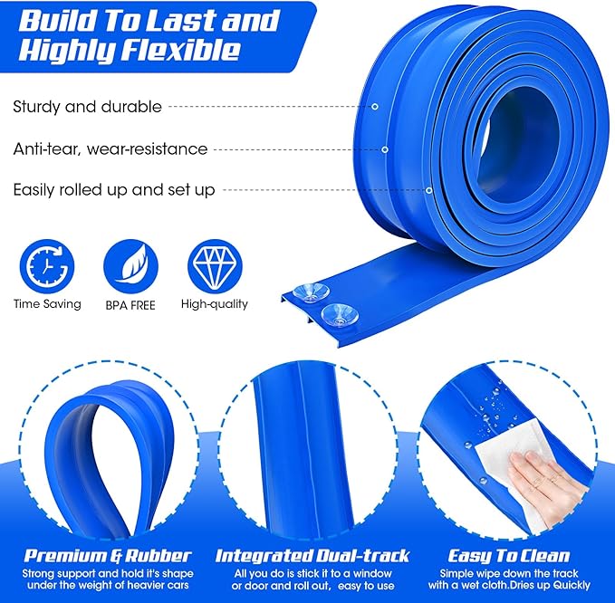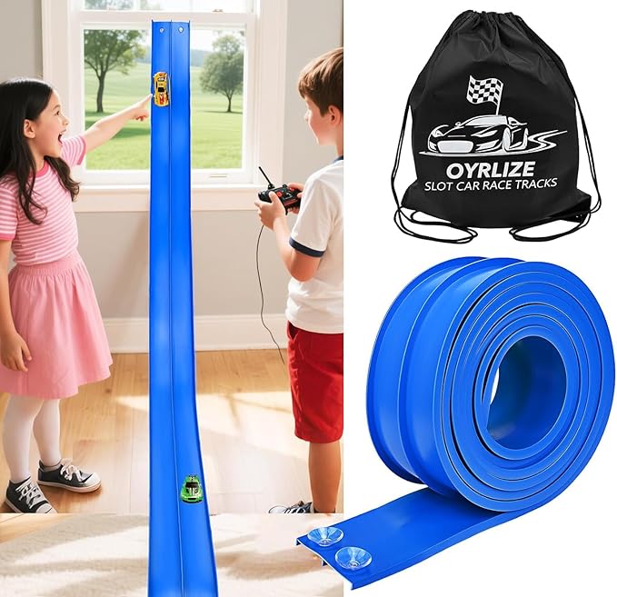 • 【No Assemble & Portable】The portable toy cars track with two suction cups has strong suction, quick and easy to set up and play, all you do is stick it to ceramic, window, mirror, glass, metal, fiberglass surface and roll out. Easily rolled up, comes with a storage/travel bag for storage, take on the go, travel ,beach, park, vacation, on the road, perfect for indoors and outdoors use.