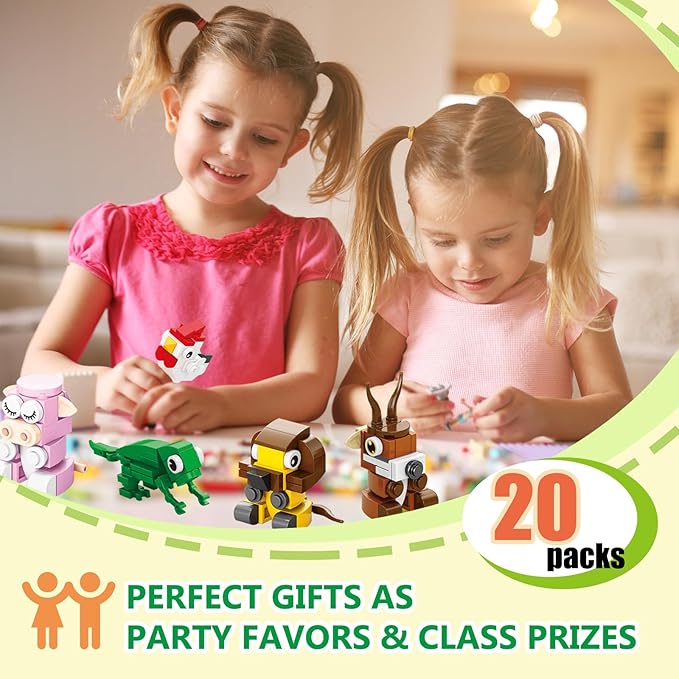 20 Pack Party Favors Building Set for Kids, Mini Animals Building Block Toy, Classroom Prizes Goodie Bags Stocking Stuffer, Easter Gifts Birthday for Boy Girls Age