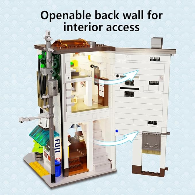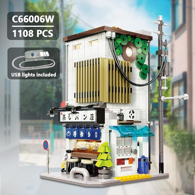 CaDA Master C66006W Japanese Bun House Building Set,MOC Construction Baozi Shop Brick Toy,1108PCS City House Block Kits for Adults