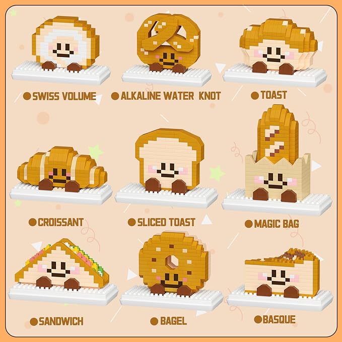 About This Cute Bread Mini Block Set:Our delicious food building block set includes 9 different mini building blocks, including Swiss... Read more