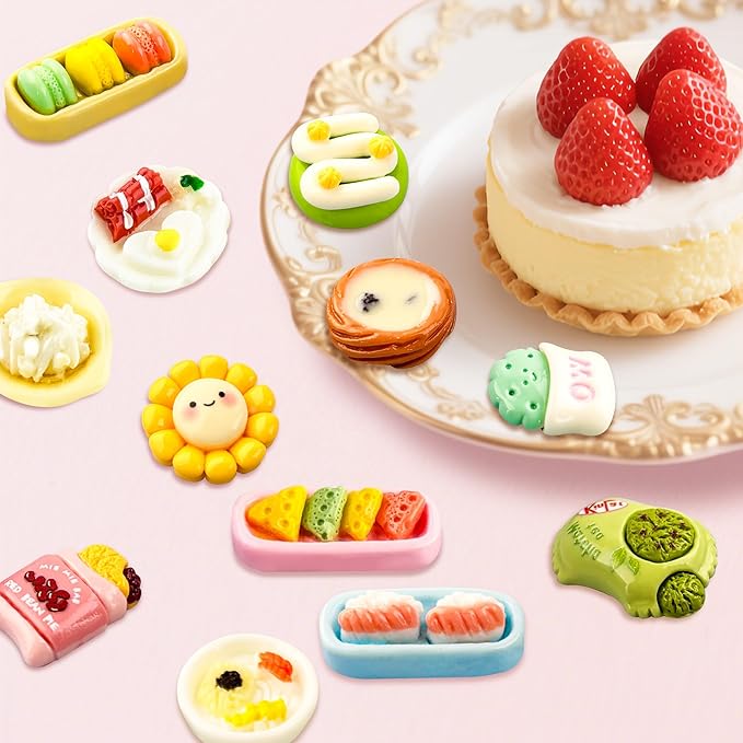50 Pcs Miniature Food Mini Resin Food Tiny Food for Barbie Food Accessories Fairy Garden Micro Landscape Decoration