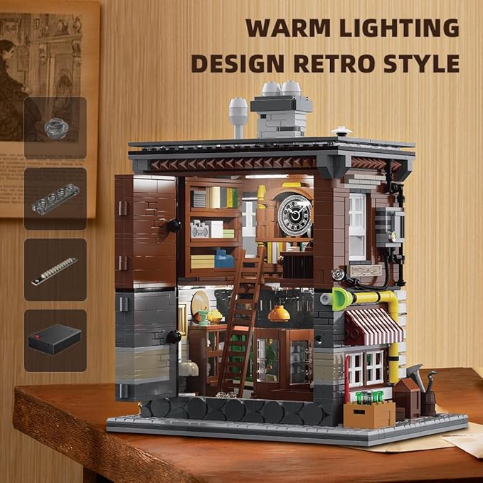 Antique Shop Lighting Building Blocks Kit, 1954 Pcs Modular Construction Building Model Sets, Assembly Gift for Teens and Adults