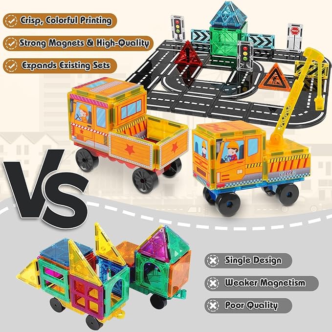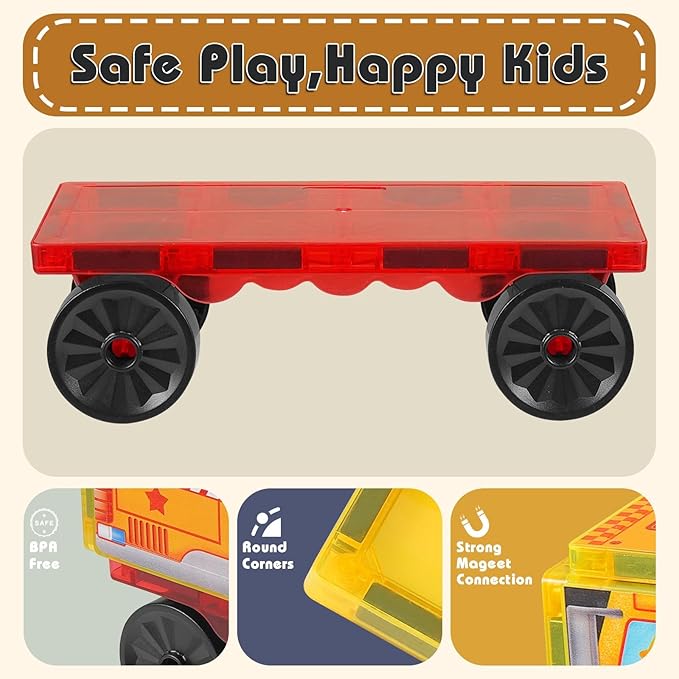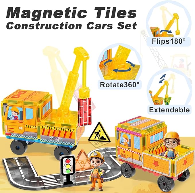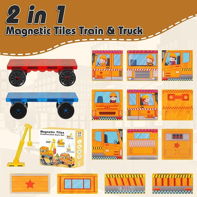 Magnetic Tiles Cars Construction Set - 19 PCS Magnetic Tiles Magnet Bricks Truck Sensory Toys, Educational Magnet Cars Set Building Blocks for 3 4 5 6 7 8+ Year Old Girls Boys Toddler Expansion Set