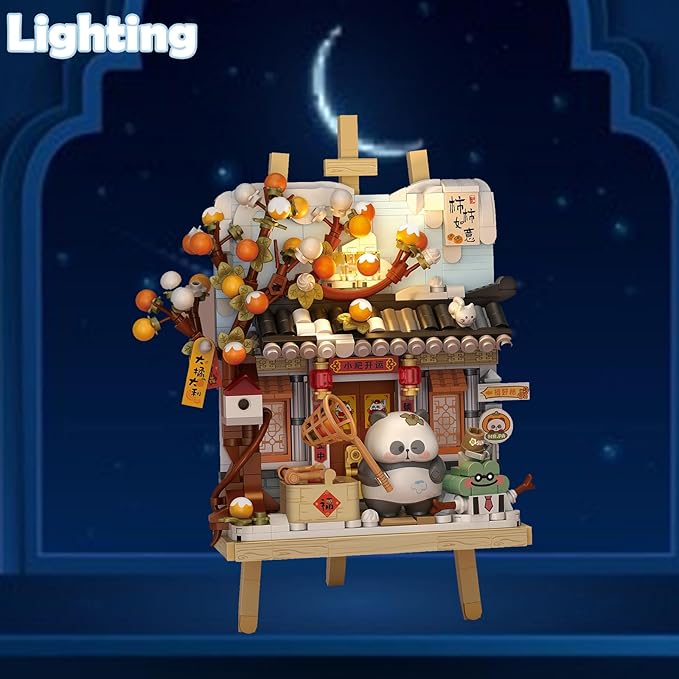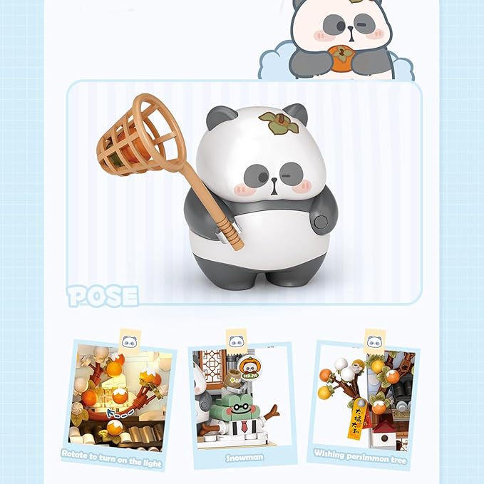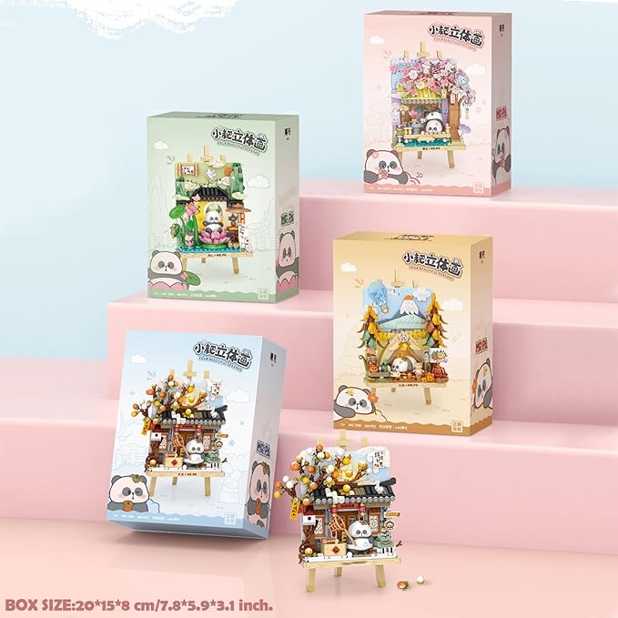MEIEST Panda Mini Building Blocks Cute 3D Painting Model Set,Creative 4 Seasons' Views Collection Construction Building Bricks Toy,Home Decor (Winter-Persimmon)