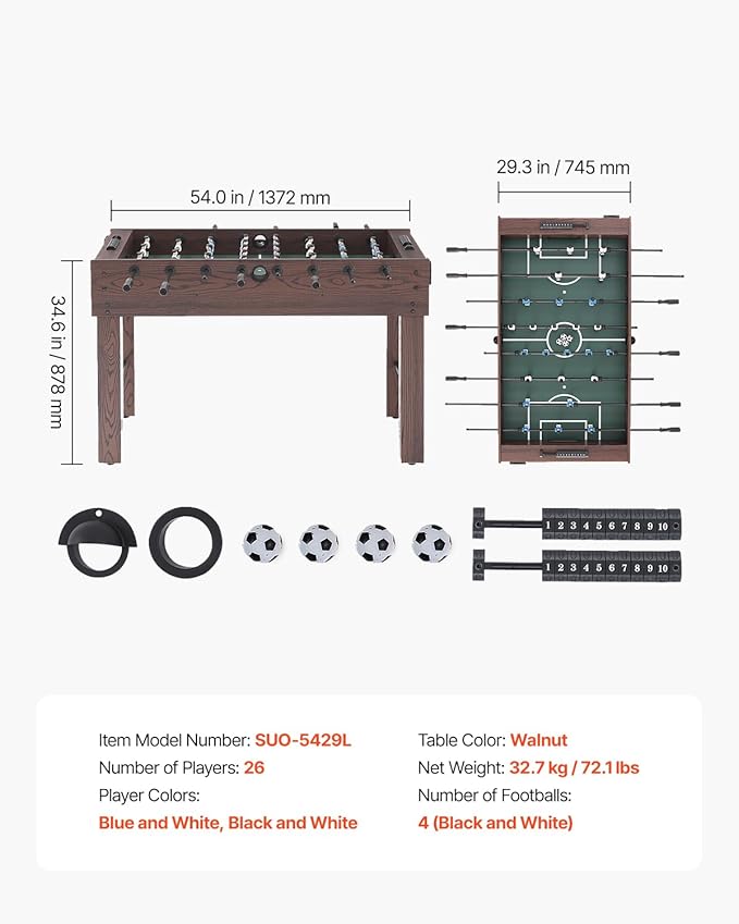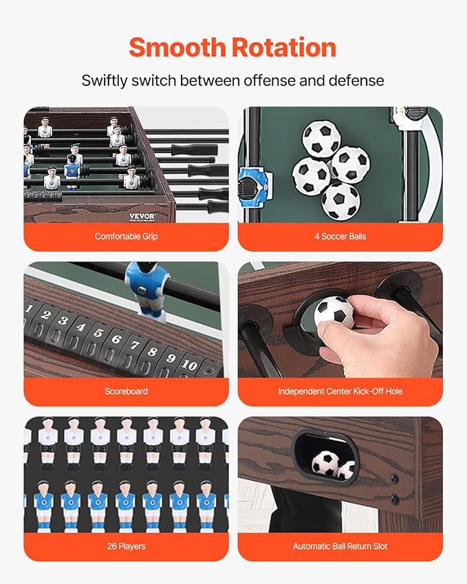 VEVOR Foosball Table 42/48/55 in Foosball Table Indoor Full Size Foosball Tables for Home, Family, and Game Room, Durable Soccer Set, Includes 2/4 Balls, Score Keeper, and 2 Cup Holders