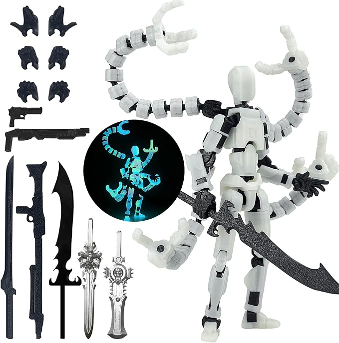 Already Assembled T13 Action Figure Accessories,T13 Multi-Jointed Movable,for Collectors Desktop Decorations t-13 Movability 3D Printed Toys (Luminous, 5.5inch)