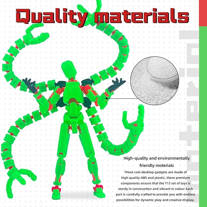 T13 Action Figure Already Assembled Accessories,T13 Multi-Jointed Movable,for Collectors Desktop Decorations t-13 Movability 3D Printed Toys (Green, 7.2inch)