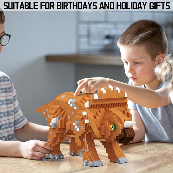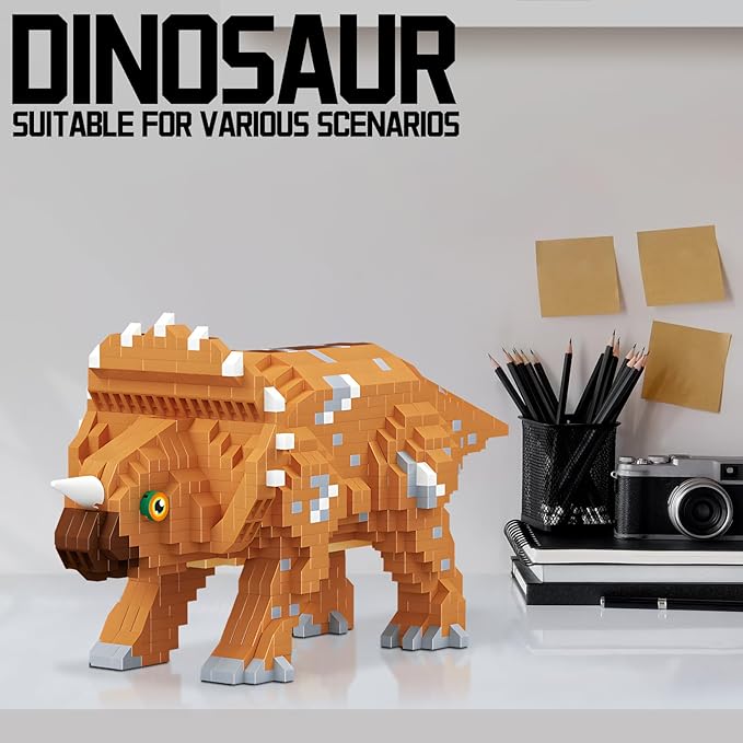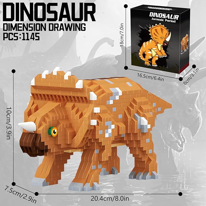 Dinosaur Triceratops Building Blocks Model Decor Micro Mini Blocks Toy Birthday for Age 6+ Children Adults Teens 1145 Pieces