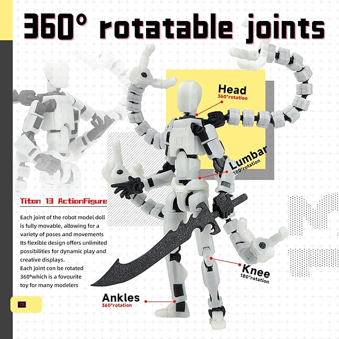 Already Assembled T13 Action Figure Accessories,T13 Multi-Jointed Movable,for Collectors Desktop Decorations t-13 Movability 3D Printed Toys (Blue Noctilucent Blue, 5.5 Inch)