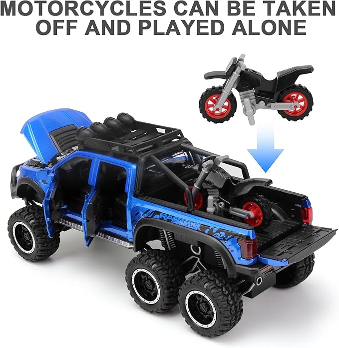 • 【1:24 Scale Model Trucks】The finely crafted car model will be presented to you as a 1:24 diecast model.Model truck size:L×W×H:8.6×3.5×3.7(inches). Just the right size for little ones to grasp.Toy trucks for kids ages 3-5