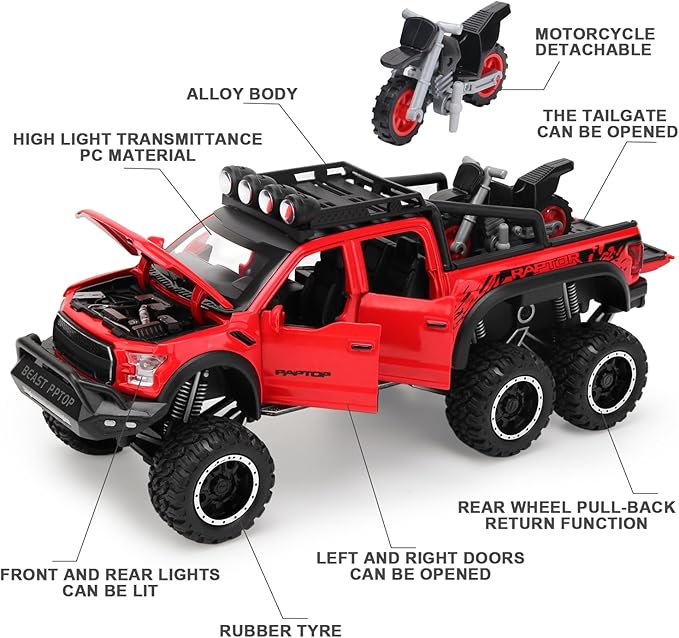 Toy Truck Pickup Model Car for Boys Age 3-8 Diecast Truck by F150 with Sound and Light for Kids, Pull Back Car Gift Toys for 4-7 Years Old