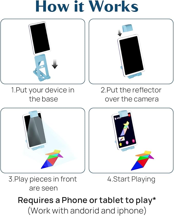 Qxtamo® Innovative AR Tangrams Puzzles Games, 1000+ Animated Sensory Toys, Family Travel Learning Education STEM Toys Birthday Gift Party Favors for Kids Children Boys Girls Teens, Ages 3+ Year Old