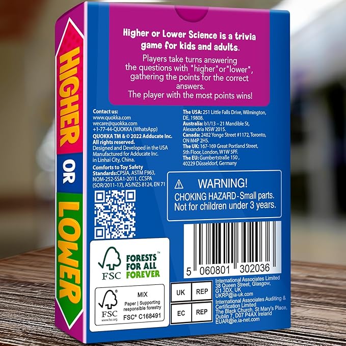 QUOKKA Trivia Board Games for Kids and Adults - Version V2.0 - Family Night Science Games 4xSet Higher or Lower Trivia Cards | Guess Fun Questions | 2 + Players - Challenge Your Science Knowledge