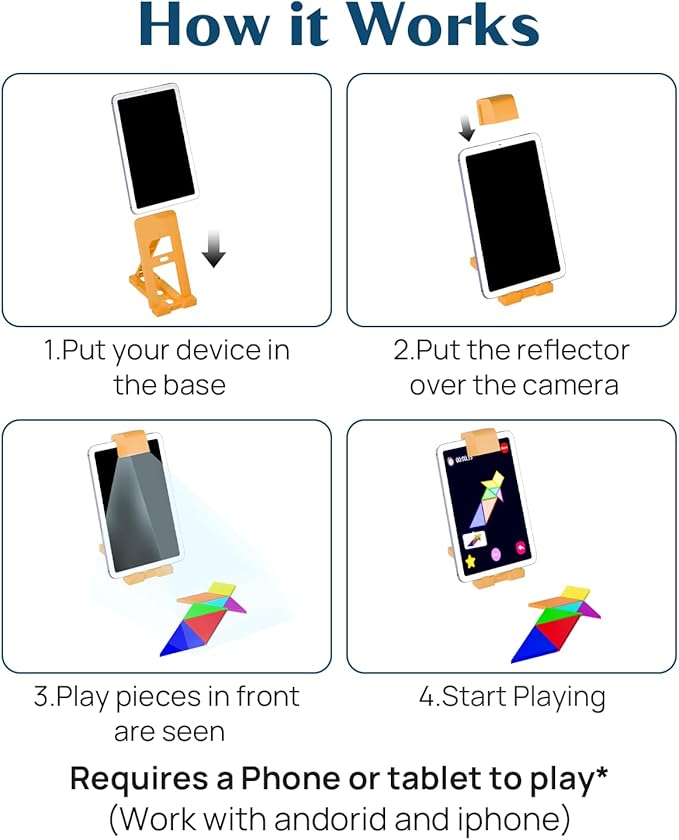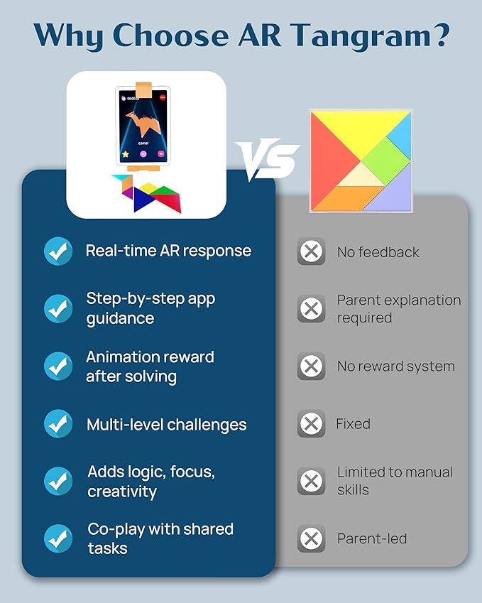 Qxtamo® Innovative AR Tangrams Puzzles Games, 1000+ Animated Sensory Toys, Family Travel Learning Education STEM Toys Birthday Gift Party Favors for Kids Children Boys Girls Teens, Ages 3+ Year Old