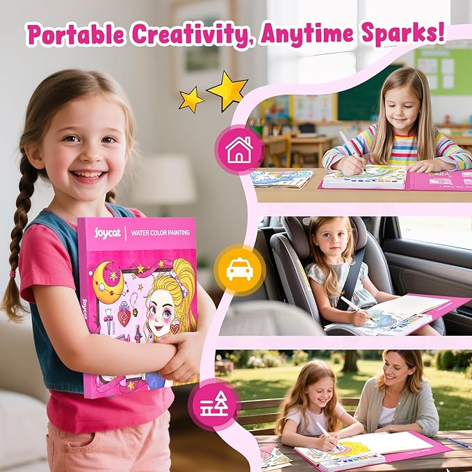 JoyCat Paint with Water Coloring Books for Toddlers, Watercolor Painting Sets for Kids Ages 3-5 4-8, Arts and Crafts Drawing Activities Toy Birthday Gift for Boys Girls (Makeup & Manicures)
