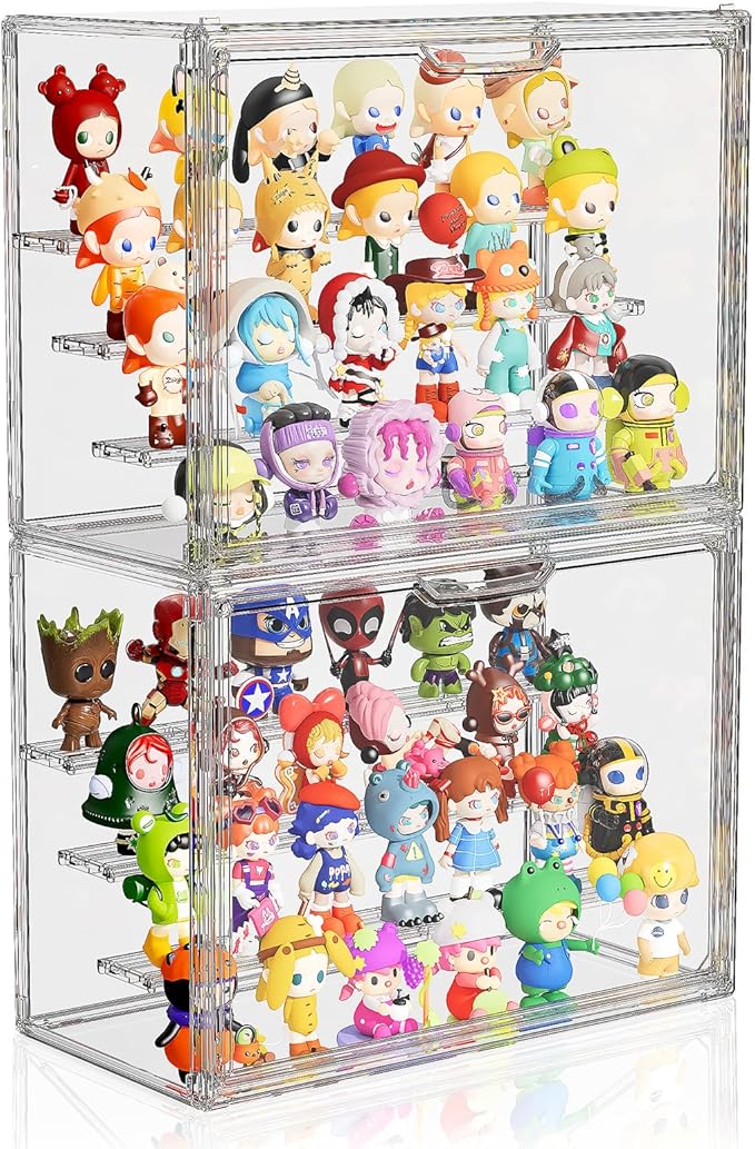 Clear Acrylic Display Case for Collectibles 4 Layer Hobby Figure Display Case Box with Shelves Stackable Figurine Display Shelf for Funko Pop, Pop Mart, Labubu, Model, 2 Pack