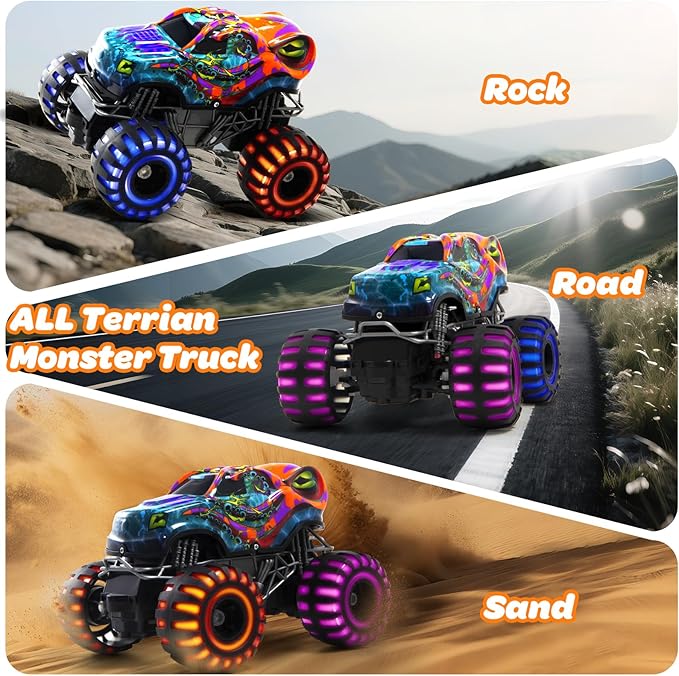 Remote Control Monster Truck, RC Truck with LED Lights, 2.4GHz All Terrain Monster Trucks Toys, Remote Control Car for Boys 4-12 for Kids Christmas Birthday Gifts