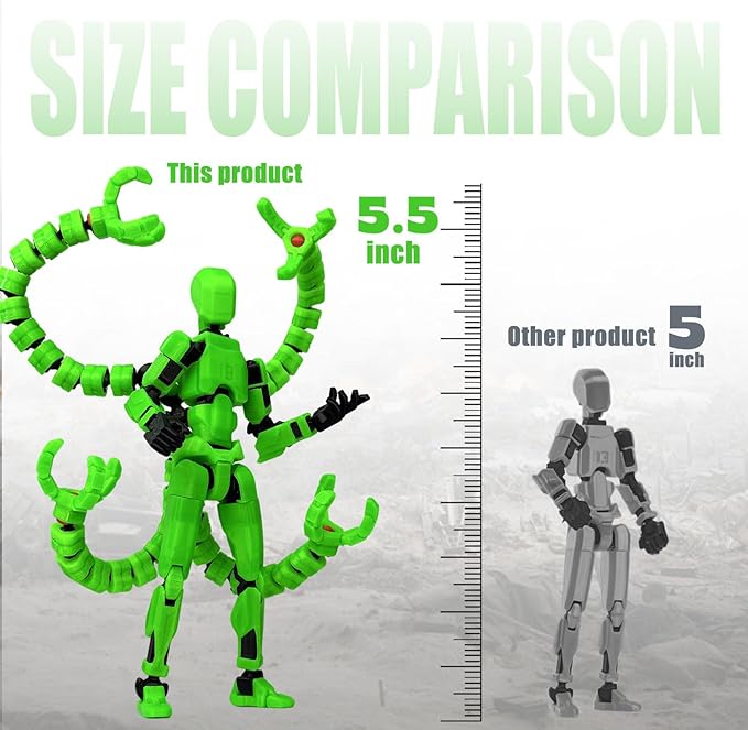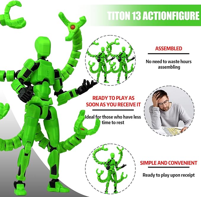 Already Assembled T13 Action Figure Accessories, T13 Multi-Jointed Movable,for Collectors Desktop Decorations t-13 Movability 3D Printed Toys (Luminous Green, 5.5 Inch)