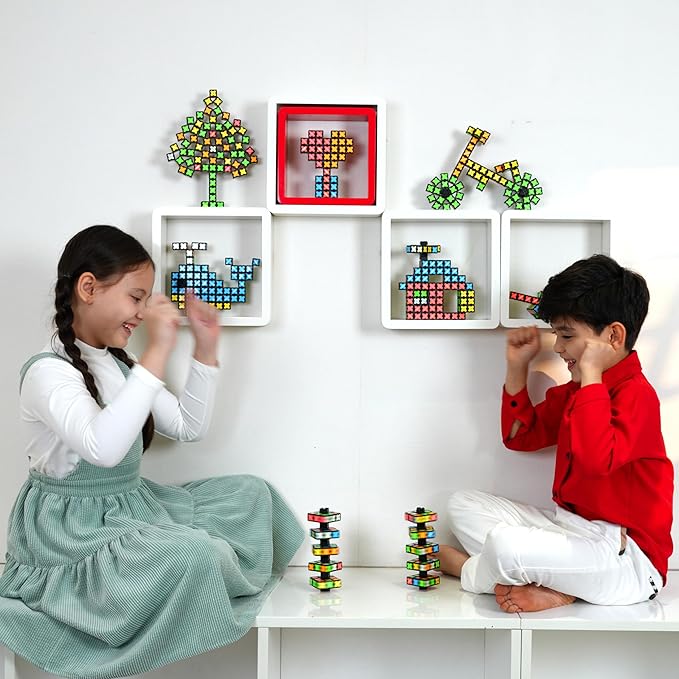 TOSY Magnet Fidget Spinner Glow - 16 Blocks, 3 in 1 Toy: Transformable Fidget Spinner, Infinity Cube, 2x2 Puzzle Cube, Glow, STEM/STEAM Magnet Tiles Birthday Gift for Kids/Boys/Girls/Adults, 2-Pack