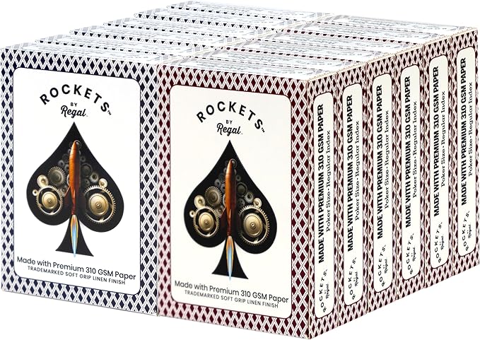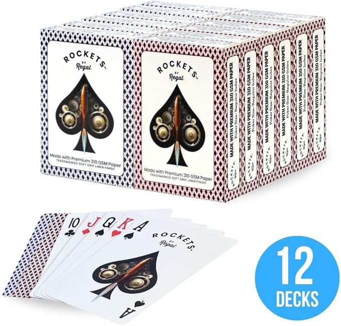 Regal Games [12 Decks] Rockets Bulk Playing Cards Set for Adults & Professionals - 310 GSM Linen Finish - Poker Cards for Blackjack, Euchre, Canasta - Casino Grade, Travel & Game Night Cards