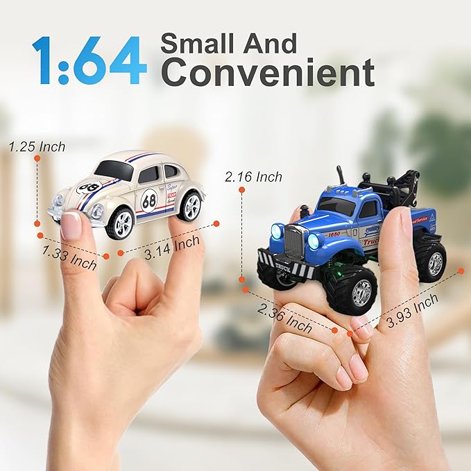 About This Ultra-Portable Fun: The pocket rc truck toy car is built with1:64 scale, lightweight design for play anywhere, indoors... Read more