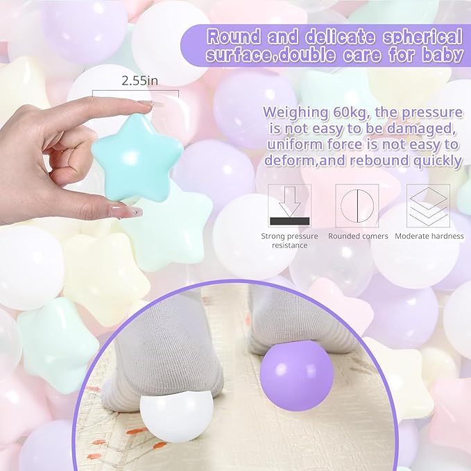 About This SAFETY : Pack of bulk 200balls (100 balls,100 stars) , Phthalate & BPA Free, Made from non-toxic material,... Read more