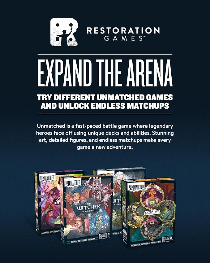 Restoration Games Unmatched Battle of Legends Vol 3 - Strategy Board Game for 2 to 4 Players - Expansion with 4 New Heroes and Battlefields - 20-40 Min Playtime - Ages 9+
