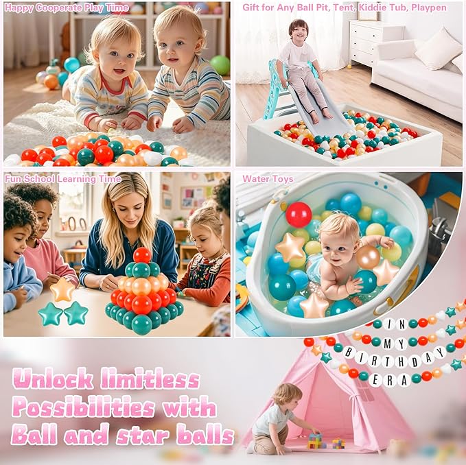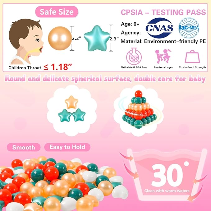 Ball Pit Balls Pack of 100 200 500 - Star and Round Set BPA Free Phthalate Free Non-Toxic Crush Proof Play Balls Soft Plastic Balls for Toddlers Baby Kids Birthday Pool Tent Party