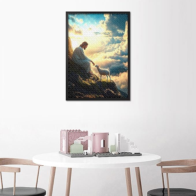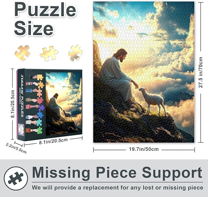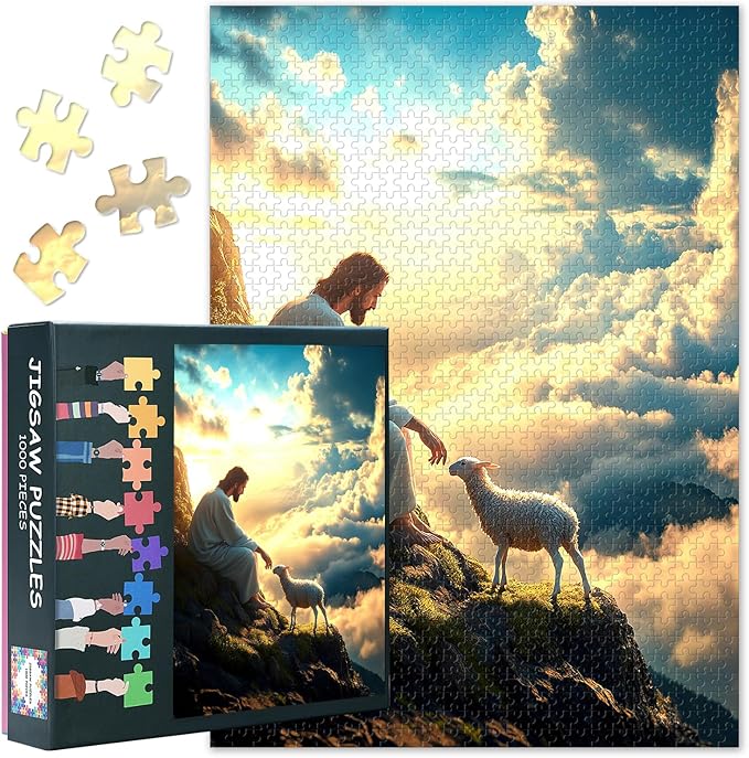 Jigsaw Puzzle for Adults 1000 Piece - Jesus and The Lost Lamb Biblical Art, Serene Religious Scene with Premium Puzzle Board, Challenging Christian Puzzles 1000 Pieces (27.5x19.7 in)