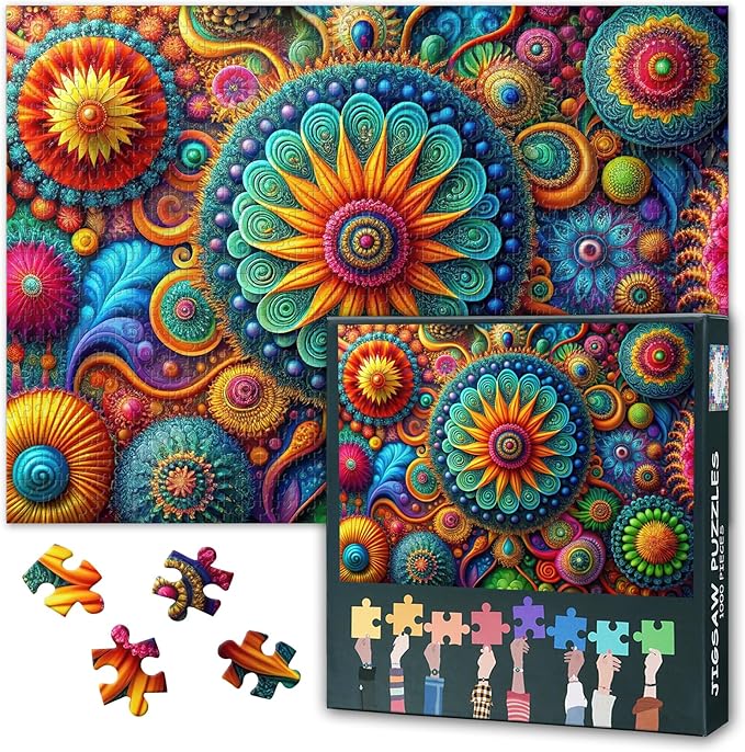 Puzzles for Adults 1000 Pieces - Vibrant Floral Abstract Art, Colorful Flowers Design with Premium Puzzle Board, Adult Jigsaw Puzzle 1000 Piece for Relaxation (27.5x19.7 in)