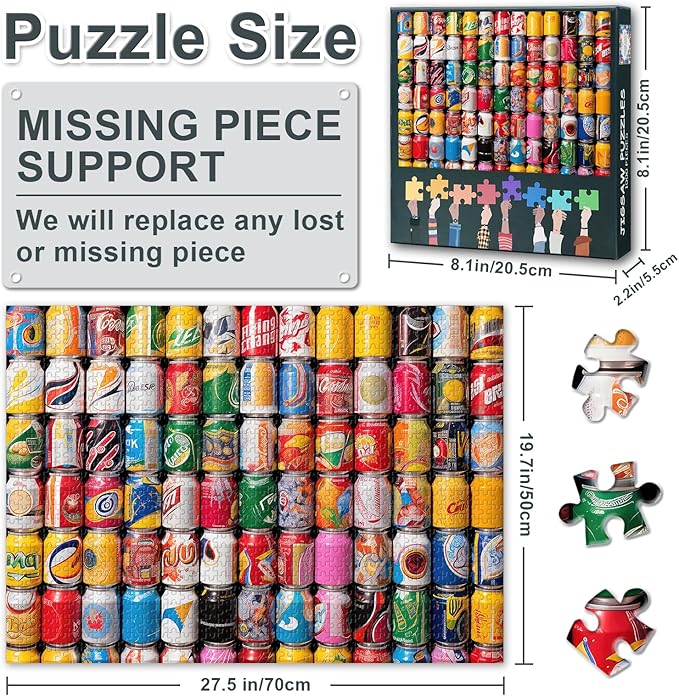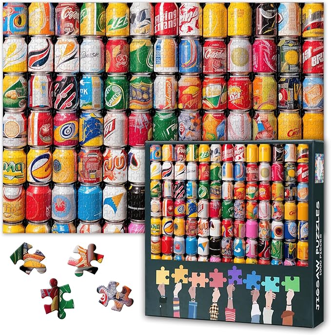 Jigsaw Puzzle for Adults 1000 Piece - Vibrant Neatly Arranged Drink Cans, Modern Beverage Bottle Art with Premium Puzzle Board, Adult Puzzles 1000 Pieces for Relaxation (27.5x19.7 in)