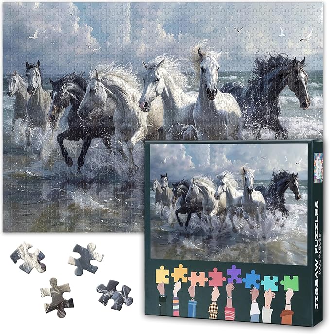 Jigsaw Puzzle 1000 Piece for Adults - Galloping Horses in Water, Dynamic Splash Art, Premium Adult Puzzles 1000 Pieces, Coolest Adult Puzzles (27.5x19.7 in)