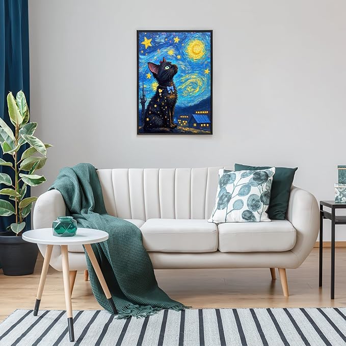 About This Stunning Van Gogh - Style Art: Features a black cat under a swirling, star - filled sky inspired... Read more