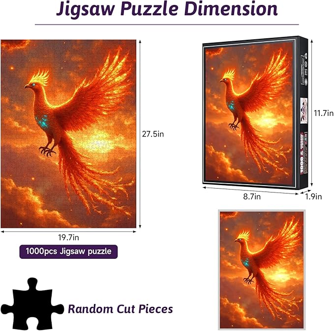 1000 Piece Jigsaw Puzzle for Adults – Majestic Phoenix Fantasy Puzzles | Challenging Firebird Mythical Creature Puzzle, Stress Relief Brain Game & Gift for Puzzle Lovers