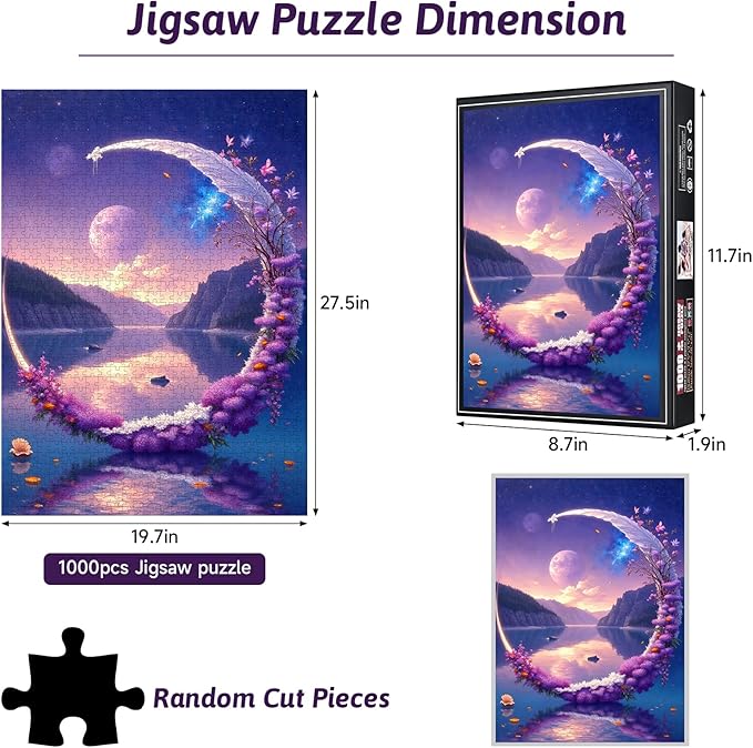 1000pcs Dreamy Crescent Moon Lake Jigsaw Puzzle - Challenging DIY Brain Teaser Jigsaw Puzzles 1000 Pieces for Adults, Family Game Night Fun, Decorative Puzzle with Surreal Landscape Design