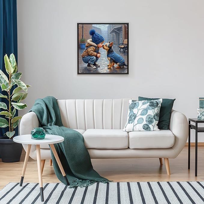 1000 Piece Jigsaw Puzzle for Adults – Adorable Boy & Dog Winter Scene, Cozy Friendship Puzzles with Cute Pet in Denim Jacket, Challenging Family Puzzle