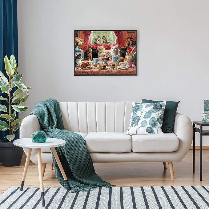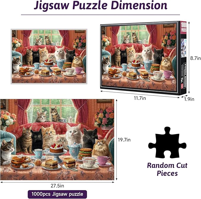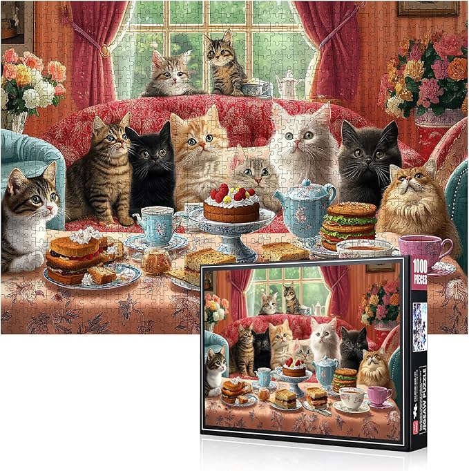 Cat Eating Cake Jigsaw Puzzle 1000pcs - Adult Jigsaw Puzzles Large DIY Brain Teaser for Family Fun, Scratch-Resistant Paper Puzzles, Home Decor Gift with Adorable Kitten Scene Adults Puzzle