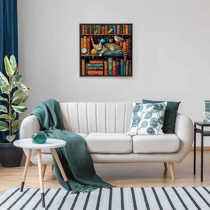 About This Whimsical Bookshelf Cat Design: A charming 1000 piece jigsaw puzzle for adults featuring a sleepy tabby cat nestled... Read more
