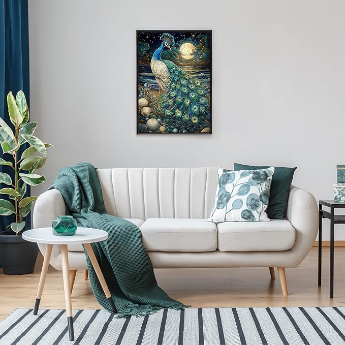 1000pcs Jigsaw Puzzle for Adults - Vibrant Blue and Green Plumage Peacock and Moon Puzzles, Peacock Puzzles for Relaxation & Brain Exercise, Premium Quality Puzzle Games for Family Nights