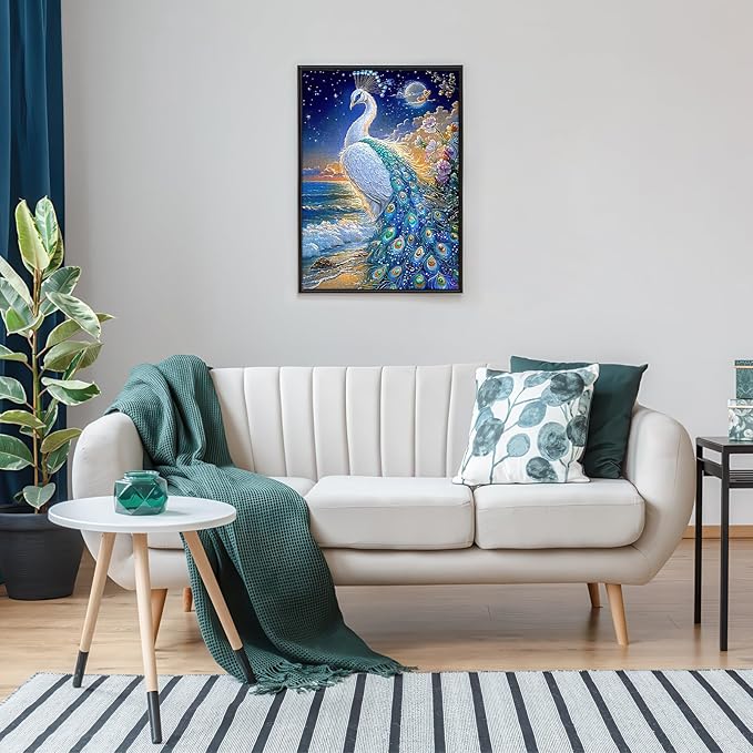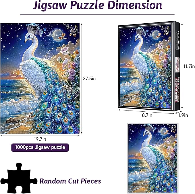 1000 Piece Jigsaw Puzzle for Adults – White Peacock Moonlight Fantasy Puzzles, Elegant Bird Artwork with Ocean Sunset, Relaxing Brain Game, Gift for Puzzle Lovers
