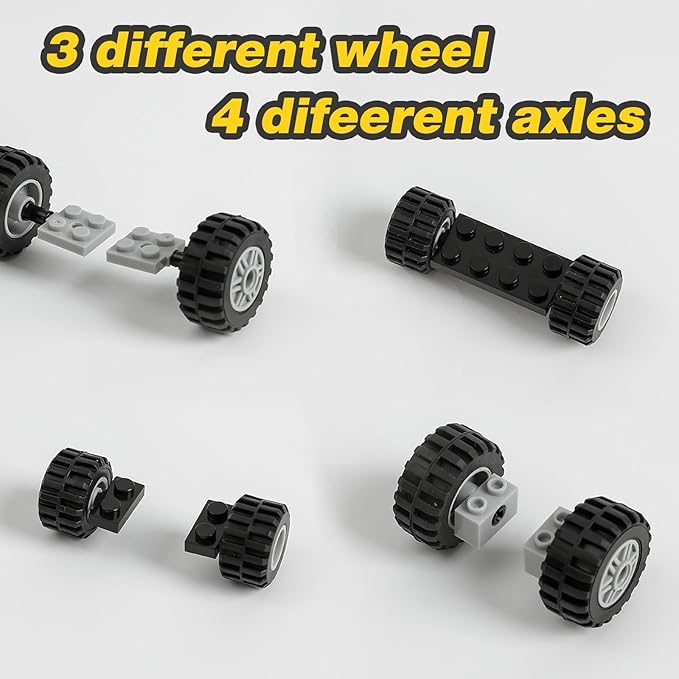 About This What's In The Box: This set includes 150pcs high-quality wheels and axles set and 300pcs building blocks, this... Read more