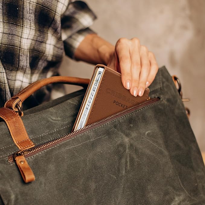 Travel Cribbage Board Game Set, Portable Unique Peg-Free Cribbage Board, Leather & Magnetic Rotating Wood Scoreboard with Playing Cards, Pocket Sized Tiny Card Game Board